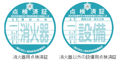 消防用設備等の点検が適正に行われ、機能が正常であるものに、点検済であることを表示し、点検実施者の責任を明確にするとともに防火対象物の関係者、利用者などに維持管理が適正に行われていることを知らせるものです。